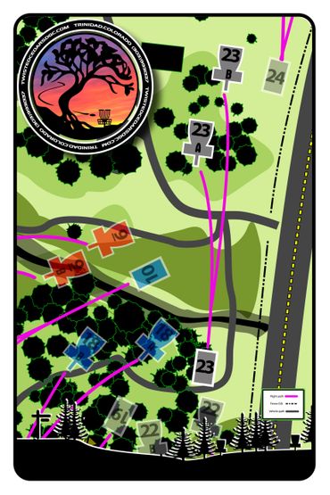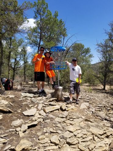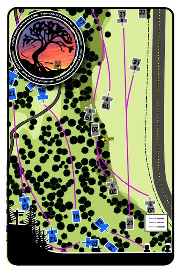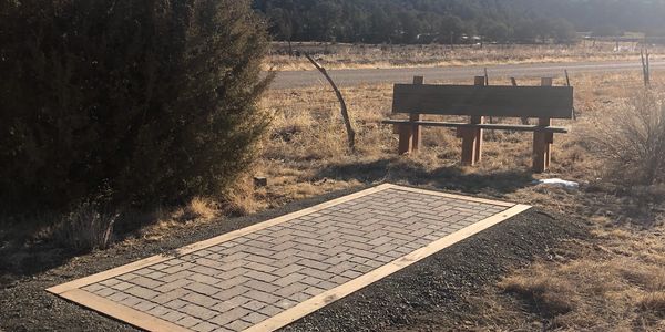 All our Tee pads are hand laid pavers wrapped in pressure treated wood. We have trash cans almost every other hole as well as benches or picnic tables at about every other hole.